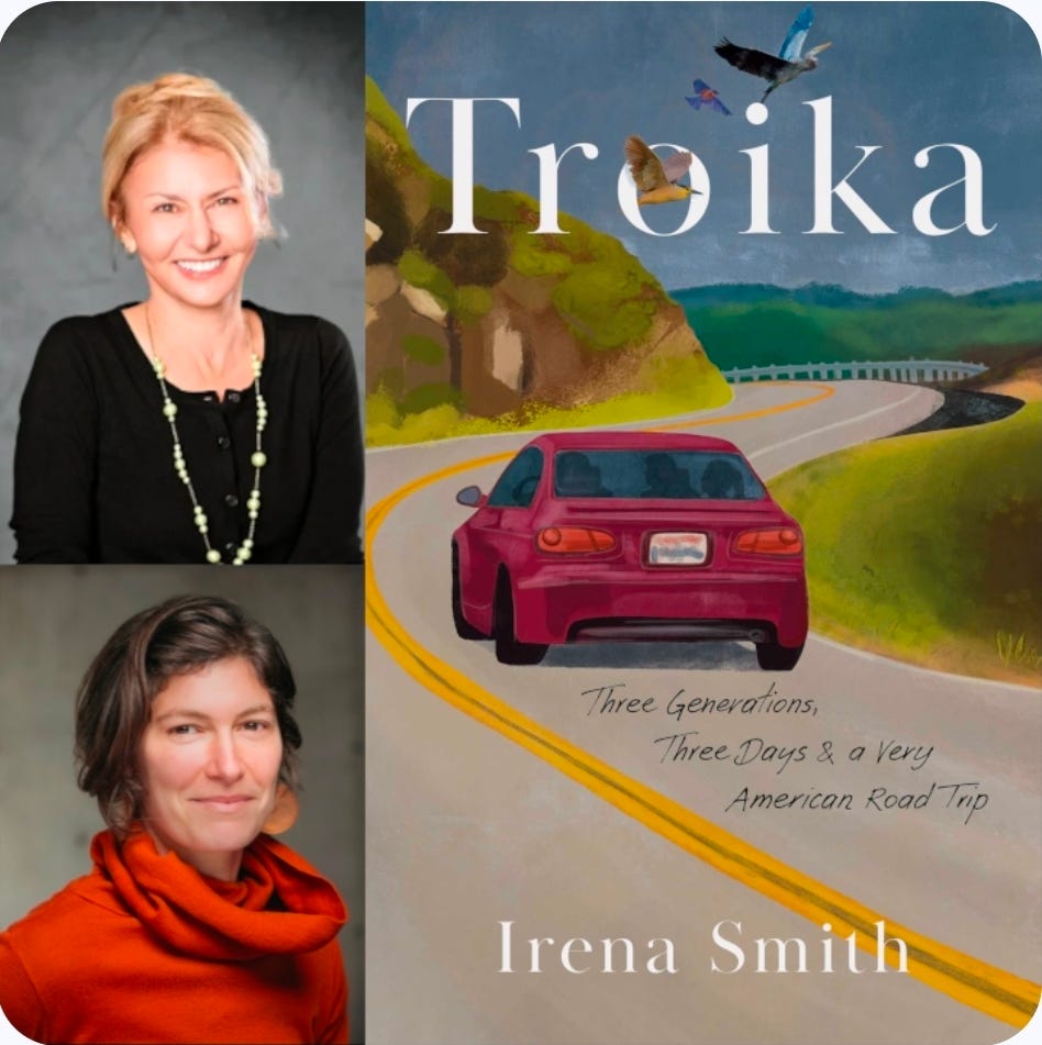 One week from today, on the evening on April 16 — 5 pm Pacific time, 8 pm Eastern — the Never Alone Book Club will feature a conversation between author Irena Smith and poet Elyse Fenton, about the former’s debut memoir Troika.